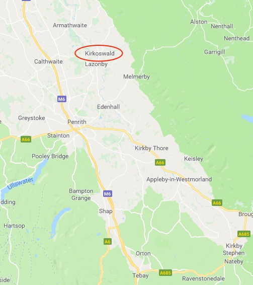 If you have read other posts on this blog, you will know that the Smiths of Melmerby lived in the upper Eden Valley of Cumberland, very close to the Pennines. The small town of Kirkoswald is about 5 miles (8 km) north west of Melmerby.