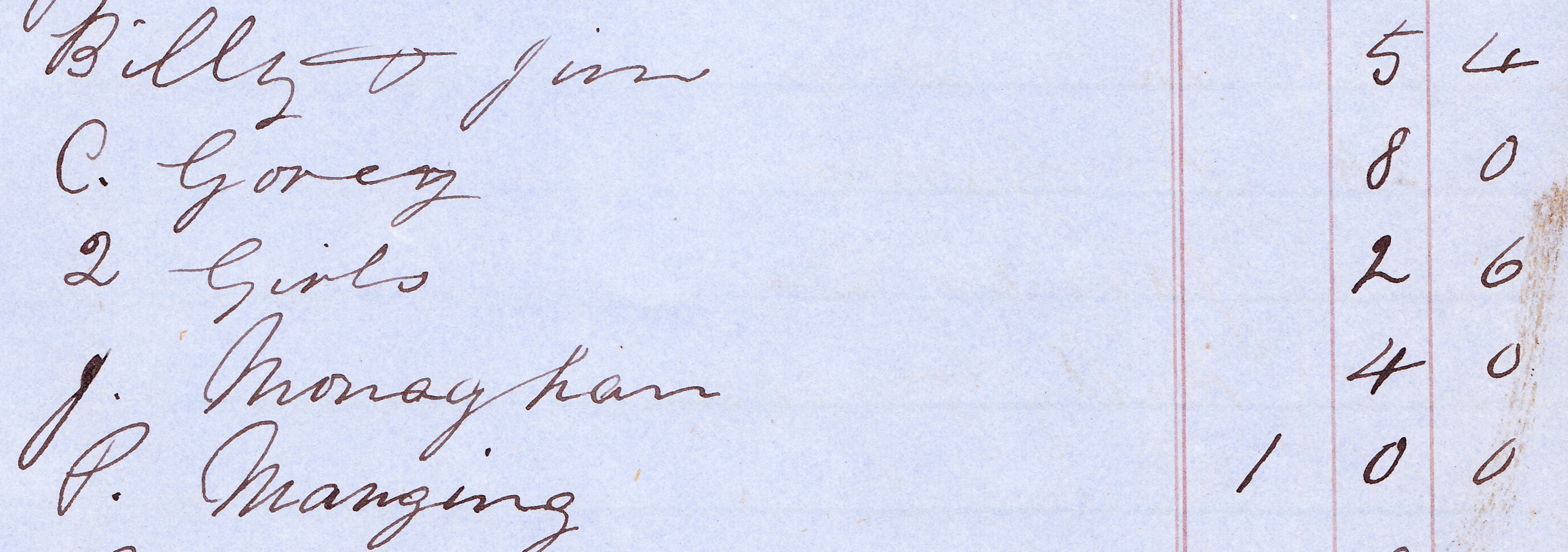 Before getting into the details of the accounts I think I need to explain something about comparing the value of money then and now. To explain it, I am relying on a useful website on measuring worth that provides different ways of measuring and comparing worth in English £s between the past and today. I am assuming that £s in Ireland were worth the same as in England then and now (which may not be true). One other thing to be aware of is the change to decimal currency in Britain in the 1970s. The old currency used the pound (£), shilling (s), and penny (d). There were 20 shillings in a pound and 12 pence in a shilling (therefore 240 pennies in a pound). The newer English currency has 100 pennies in a pound and is written as – for example – £1.50, meaning £1 and 50 pence.