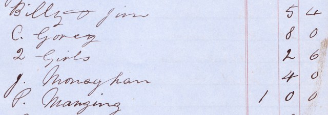 The accounts book is interesting to read, providing a glimpse into the social history of people living about 150 years ago in rural Ireland. The lives of the Smiths are interesting to me, especially those who lived at Blackhall starting with Thomas Smith (see also the post about “Thomas Smith at Blackhall”).